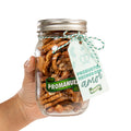 Our Mason jar with a mix of nuts, almonds and pretzels is the perfect gift